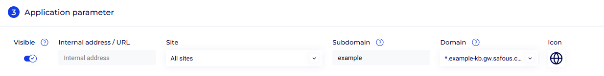Subdomain - Enter the subdomain or domain prefix to be added to the domain to form the public URL that users connect to. For example, if the subdomain entered is web and the domain is domain.gw.safous.com,