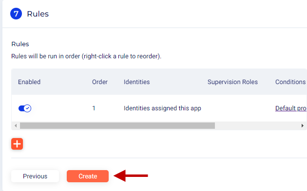 Click Create to publish the application.