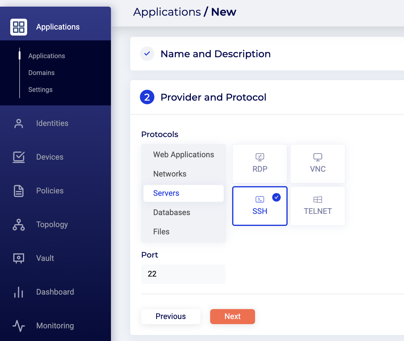 - Protocol - Click Servers and select SSH.