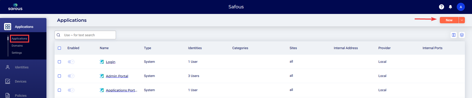 Specify the users or user groups that can log in to the Safous Application Portal to view and access the server. For more information on configuring identities, refer to the section: Identities.