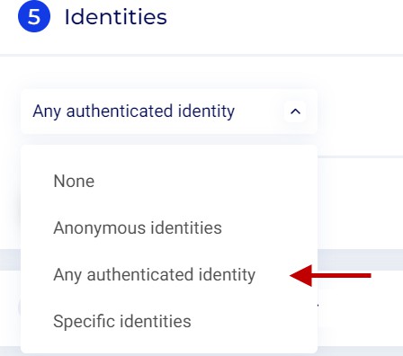 - For the purpose of this article, we select Any authenticated identity.