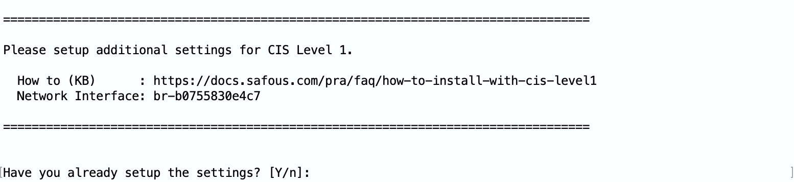 - Execute the installer by running this command with CIS Level 1 option "-s cis1"