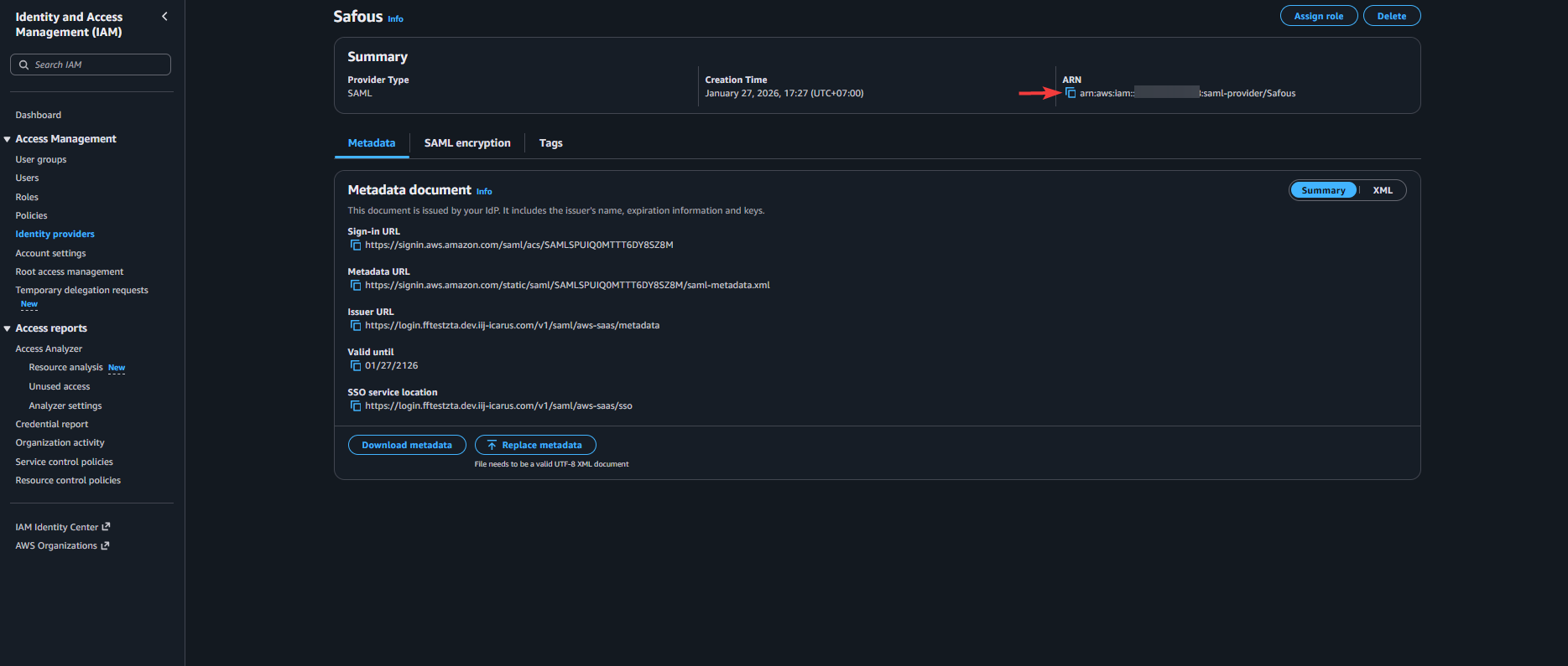 Click the newly added Identity Provider and copy its ARN.