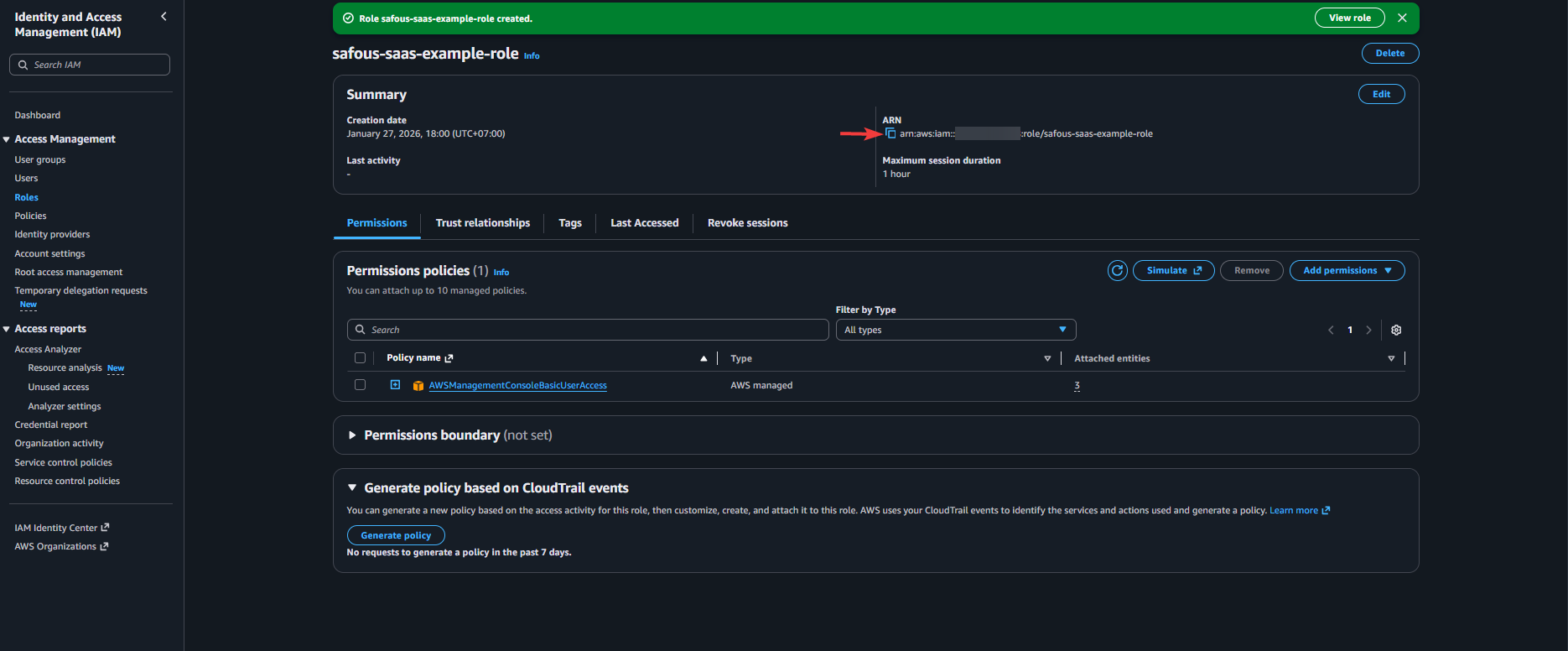 Copy or take note of ARN of the role