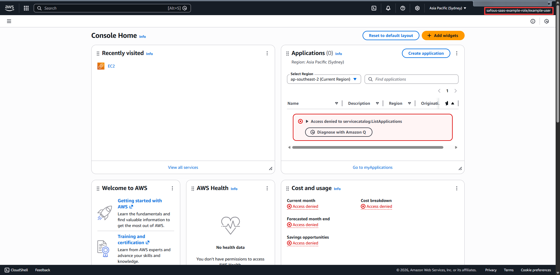 In case you get access denied on some services, then please adjust the applicable policies for the IAM role to allow access to the respective services.