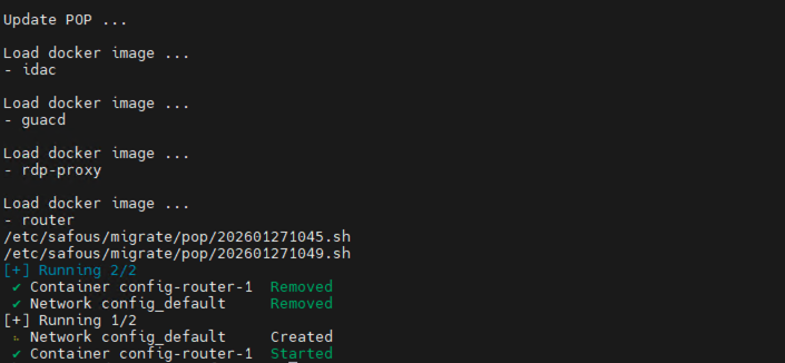 The upgrade script will automatically run and restart the POP container after the process is complete.
