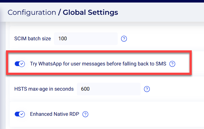 WhatsApp - When WhatsApp is enabled, the system will first attempt to reach users via Whatsapp. If the message sending fails, the system will then send a message via SMS.