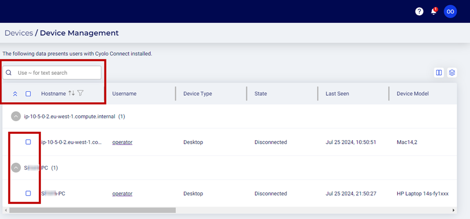 - Select devices – Enable the checkbox at the top to select all devices. To select multiple devices, enable the checkbox before each device.