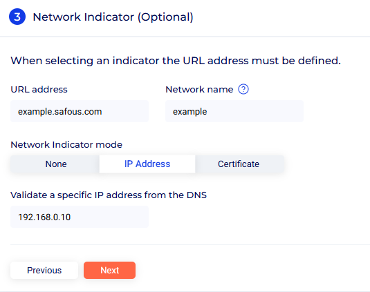 - Network Name: Enter the internal network name of a corporate resource. Safous will perform a connectivity check to this network name.