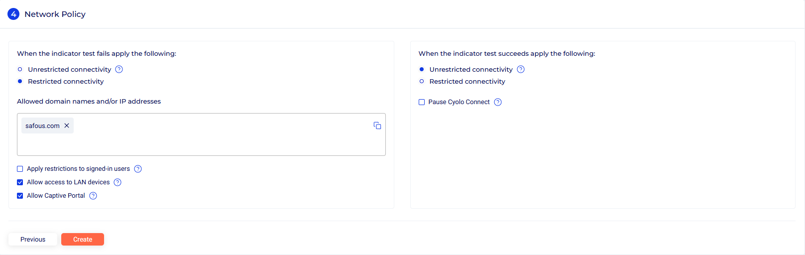 URL address β Enter the URL that will be a good indicator of the type of network the Safous agent is connected to.