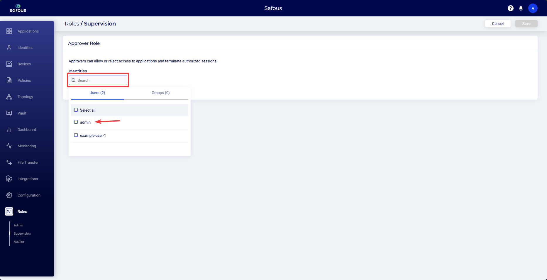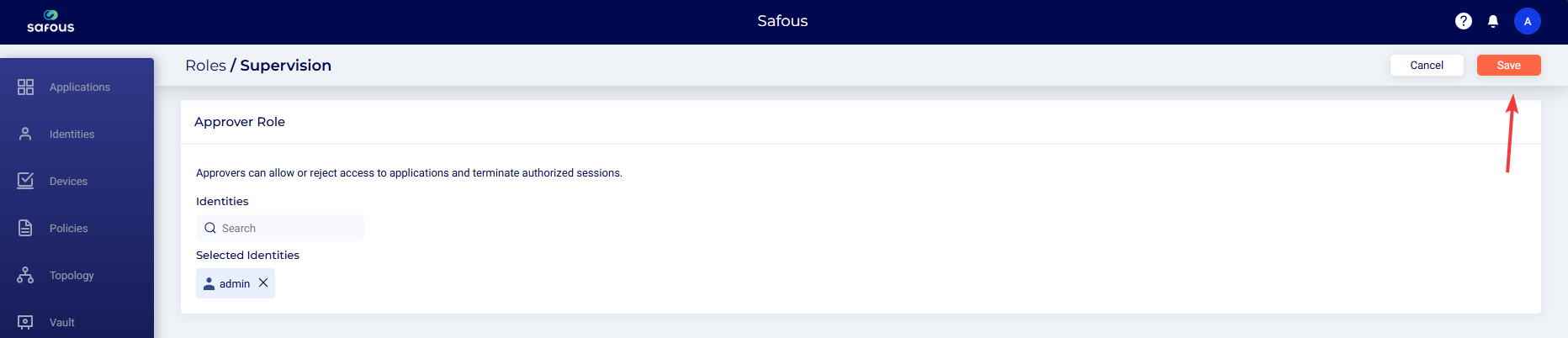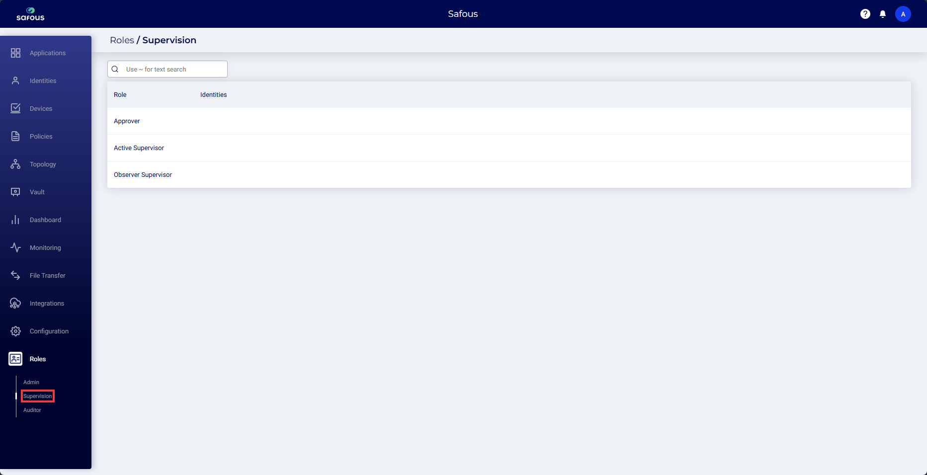 On the Safous admin portal, navigate to the Roles > Supervision page.
