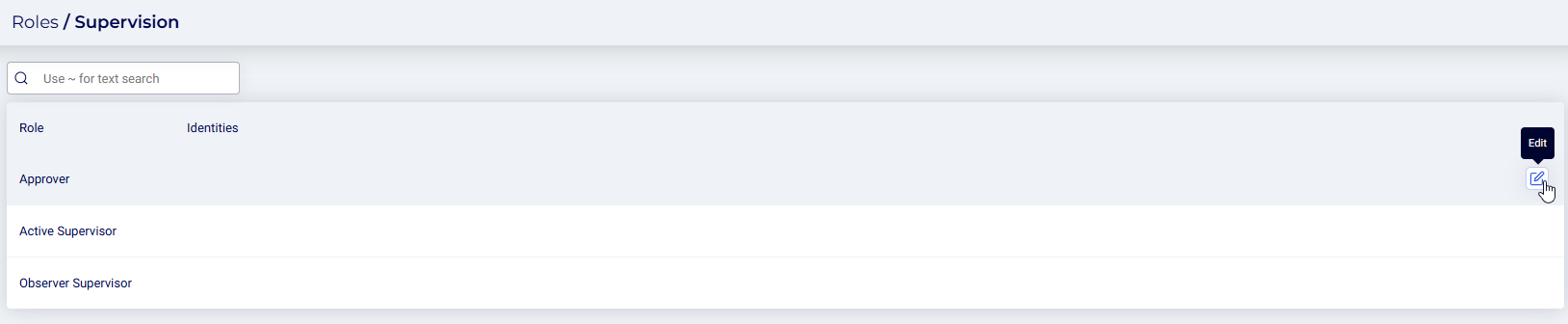 To assign a supervision role, click on the Edit button next to the role you want to modify.