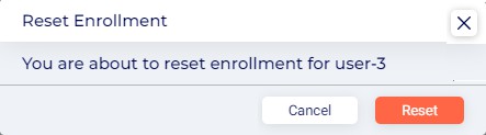b. Reset Enrollment - Clicking this option will open the Reset Enrollment window. Click the Reset button to reset the enrollment. This will set the user status to Waiting for enrollment. The user must be approved by the supervisor configured for the user before the status changes to active.
