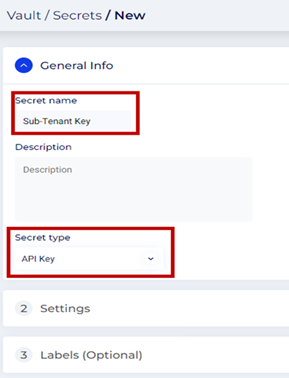 - Click the API Key drop-down menu and select the API key stored in the vault for the sub-tenant.