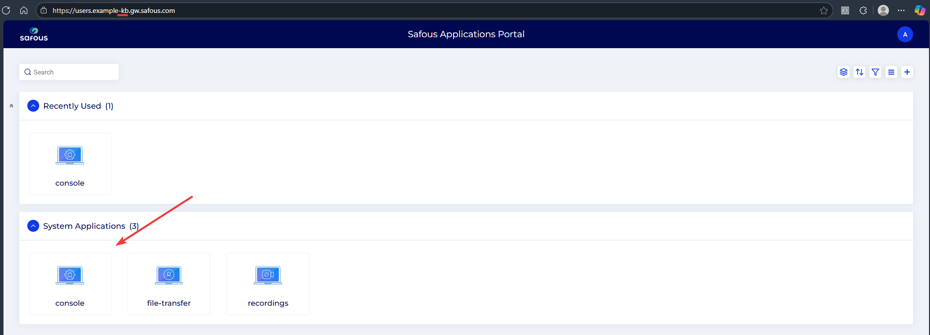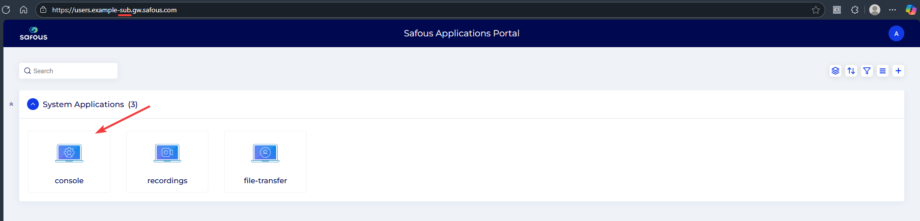 - Log in to the sub-tenant application portal and click console.