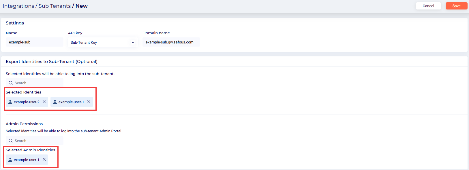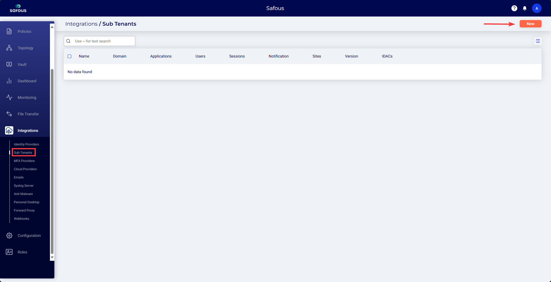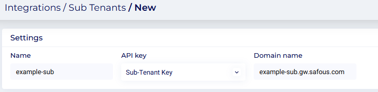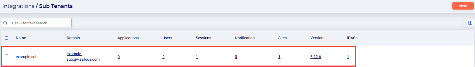 - Navigate to the Integrations > Sub Tenants page and click New.