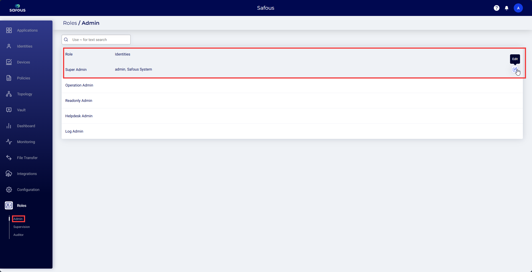 Click the Edit icon alongside the Super Admin role.