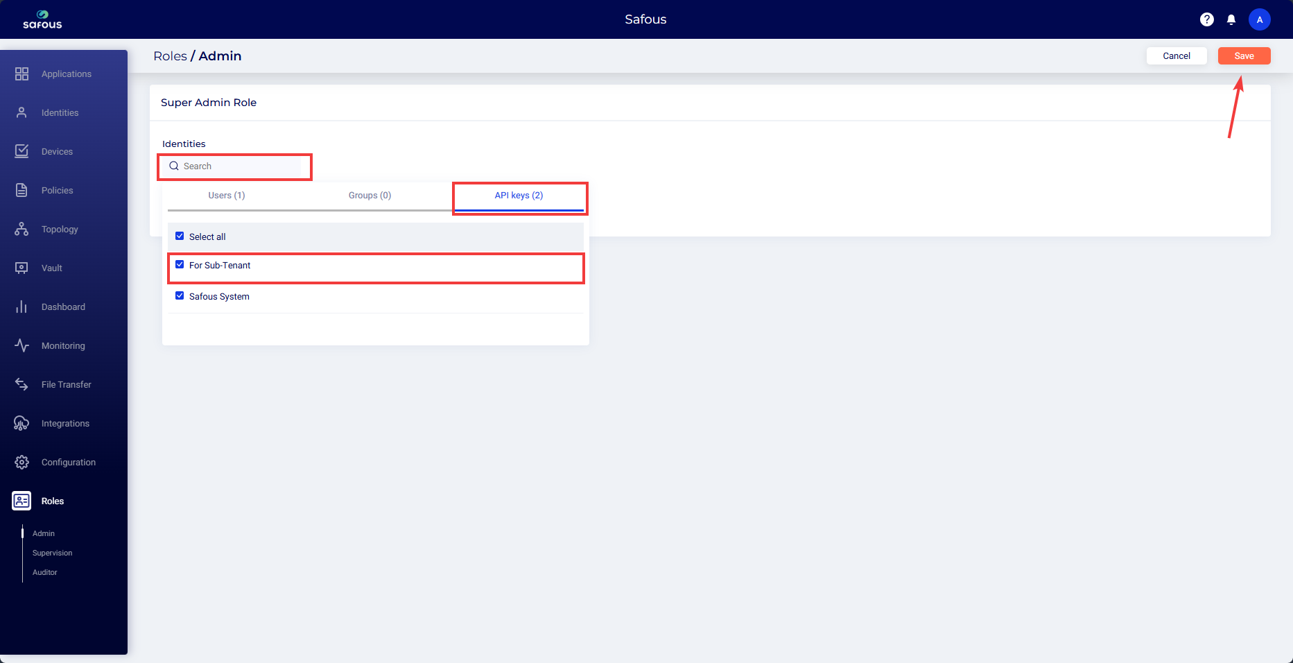 - On the parent tenant, a new Safous group is created and the selected users are assigned to it.