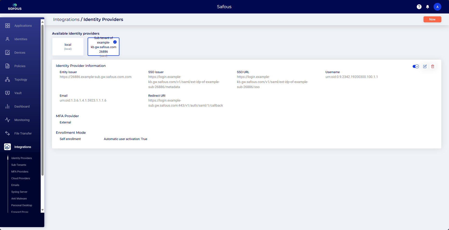 - IdP Integration on Sub-tenant: The name format is "Sub-tenant of [parent tenant's domain name] [6-digit random number]".