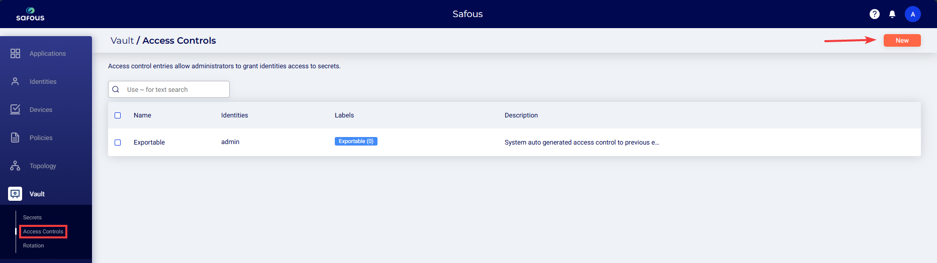 Access Controls in Safous Vault determine who can export the secrets and retrieve the confidential information within.
