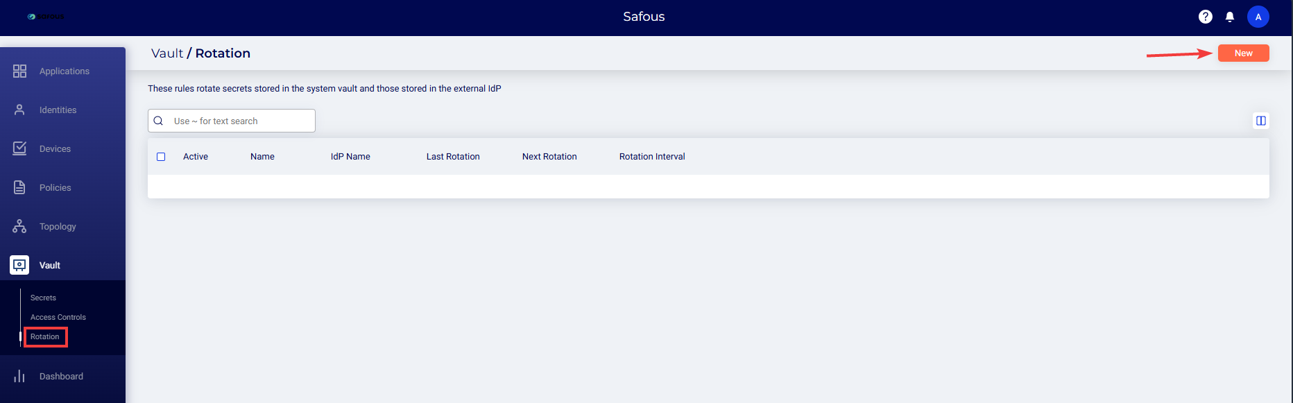 The Rotation feature in Safous Vault allows administrators to configure rules for automatic rotating of LDAP passwords that are stored in the system vault at set intervals. For this configuration to work, the LDAP server must be integrated into the Safous platform.