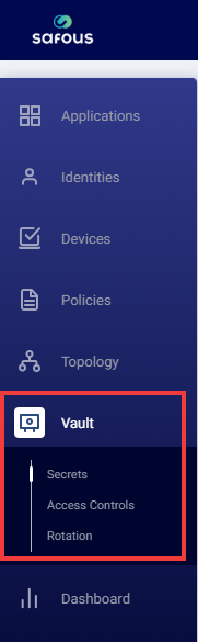 Within the Safous platform, the term secret refers to the confidential information stored on the Secrets page under the Vault menu on the admin portal.