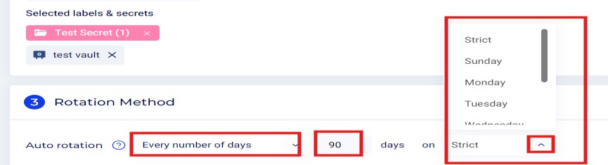 Strict - Alternately, the admin can select strict to perform the rotation on the exact day of the expiry period, irrespective of it being a workday.