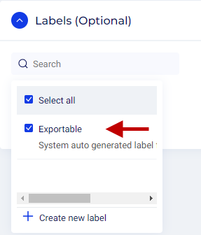 - Click the Search bar to select a label from the existing list.