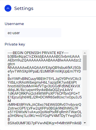 - Private Key: Click the upload icon and select the private key file, or paste its content here.