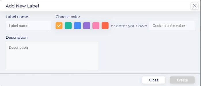 In the General Info section, enter the label name, choose a colour from the palette, or enter the colour value for a custom colour.