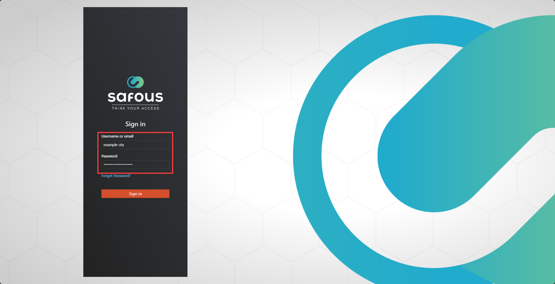 Fill the Username or email form in the portal with username you received from Safous representative or system. Also do the same for the Password form, fill with the credential you received from Safous representative or system.