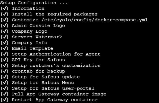 Once the installation system has obtained the certificate for the App Gateway, the output will vary based on the Safous service domain in use.