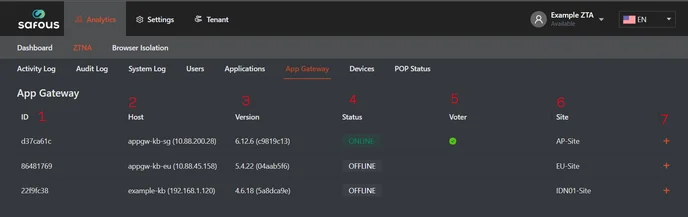 Status: Current status of the App Gateway (online or offline)