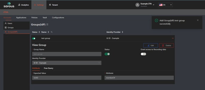- Navigate to Settings > ZTNA > Accounts >Â Groups(IdP)