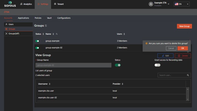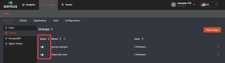 Navigate to Settings >  ZTNA > Accounts > Groups. You will see this page: