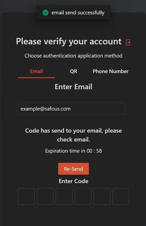 - Enter the MFA code in the provided field. Please note that each MFA code sent by Email have an expiry time of 60 seconds.
