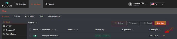 Navigate to Settings > ZTNA > Accounts > Users