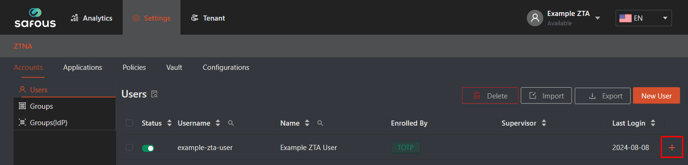 - Click the plus sign (+) on the user, which will expand the information for that specific user