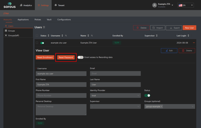 - Once the information of that user is expanded and shown, there's a "Reset Password" button to function as a reset password for the user
