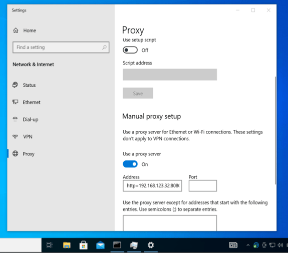 Bypass Proxy Settings field: Enter the IP address, CIDR, or hostname for the websites that are intended to bypass the proxy settings (Mac example *.local,169.254/16; Windows example localhost).