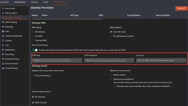 - In order to use this feature, you must configure a SAML or OpenID based external IdP prior to enabling SCIM. You can refer to this guide in order to configure them for Safous: