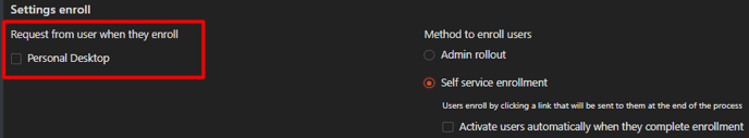 On the Settings enroll, you can request user information for Personal Desktop by enabling the option.