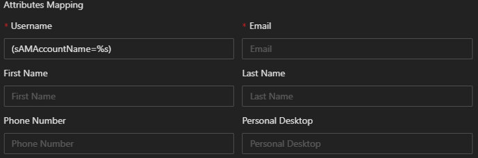 Attributes Mapping is used to map attributes between Safous and AD. By default, Safous will use the sAMAccountName from AD as the Safous username, and you will need to define the email attribute used by your AD to proceed. You can also choose to map other optional attributes listed here to your AD attributes.