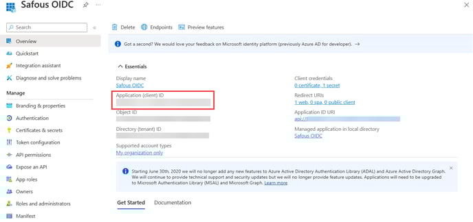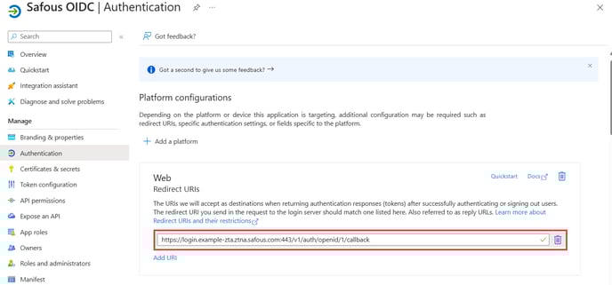 If the "Redirect URI" matches, you can retain the current setting. However, if there is a discrepancy, you will need to update the URI in Entra ID to ensure it aligns with the one configured in the Safous admin portal.