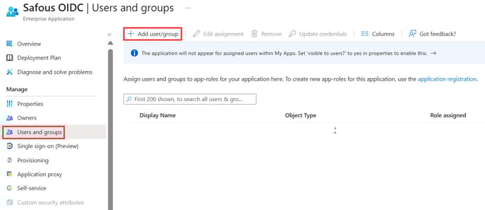 Select the users and/or groups you wish to assign to the application. Keep in mind that only these designated users and groups will have access to the Safous ZTA User Portal after the integration is complete.