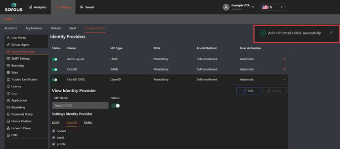 For the rest of Safous ZTA OpenID configuration, please refer to here.