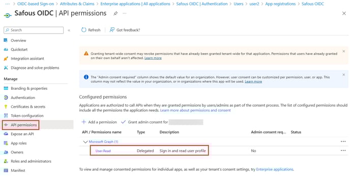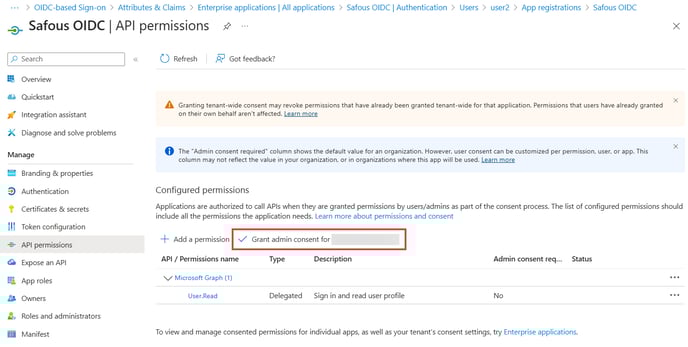 Click "Grant admin consent for (tenant)" then click yes on the confirmation prompt.