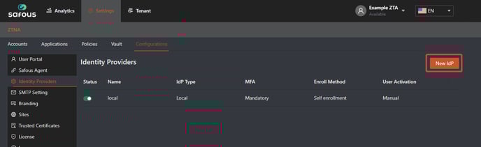 Go to Settings > ZTNA > Configurations > Identity Provider. Click New IdP, it will expand the form of IDP which you will need to configure.