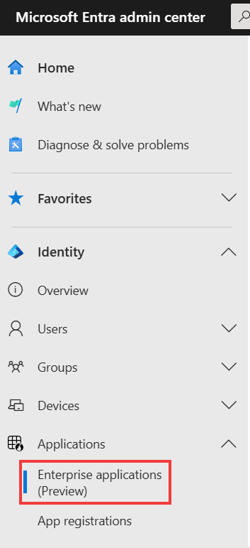 Go to Microsoft Entra Admin Center > Applications > Enterprise Applications