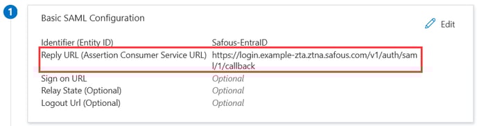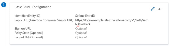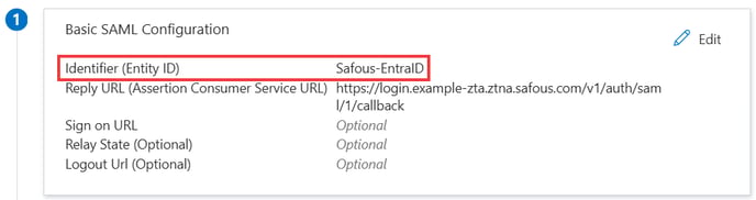 To proceed, click the Edit button to access the Basic SAML Configuration section. Here, you will need to provide values for two essential configuration fields.